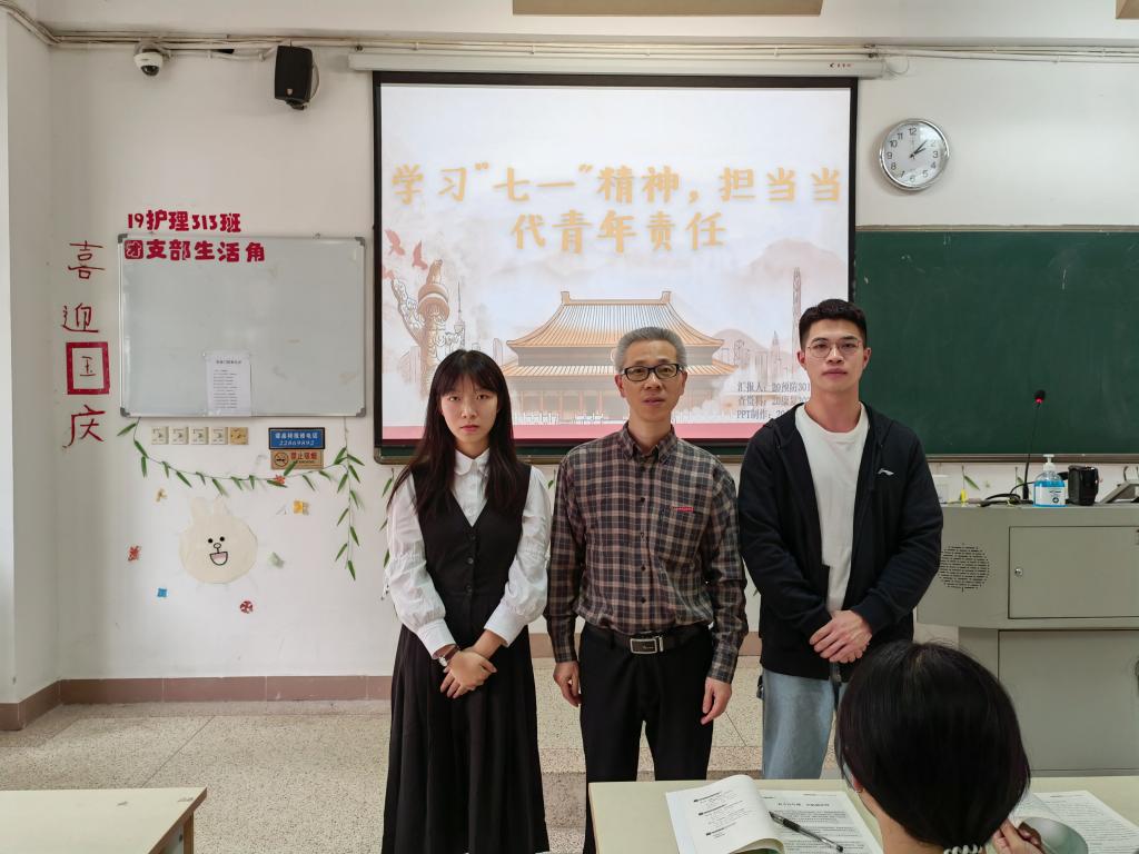 2021年10月19日下午,習(xí)近平新時代中國特色社會主義讀書社宣講團(tuán)在胡濟(jì)林老師的指導(dǎo)下,在21美容301、21美容302班開展“學(xué)習(xí)‘七一’精神,擔(dān)當(dāng)當(dāng)代青年責(zé)任”線下專題宣講。