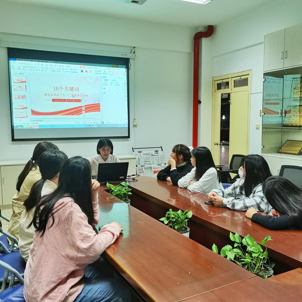 2021年10月21日,習近平新時代中國特色社會主義思想讀書社原夢隊在行政樓107開展“七一”重要講話精神學習活動。