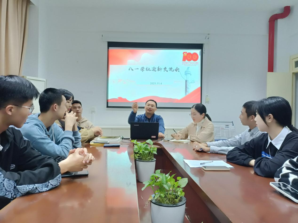 2021年11月4日下午,八一學(xué)社在馬克思主義學(xué)院107會(huì)議室舉行迎新交流會(huì),八一學(xué)社指導(dǎo)老師張崇飛、楊央以及全體社員參加交流會(huì)。