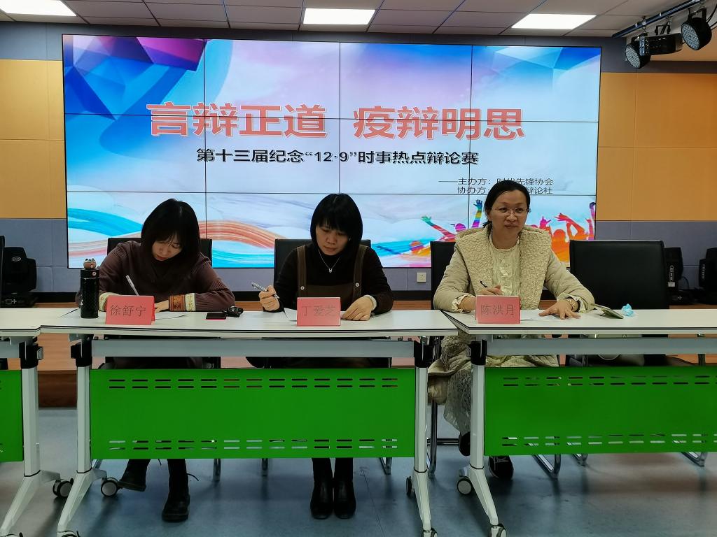 翻開歷史的篇章,86年前的今天,1935年12月9日,北平(北京)大中學(xué)生數(shù)千人舉行了抗日救國示威游行,要求保全中國領(lǐng)士的完整,掀起全國抗日救國新高潮,極大地促進(jìn)了中國人民的覺醒,推動了抗日民族統(tǒng)一戰(zhàn)線的建立。為了紀(jì)念“一二·九”愛國運(yùn)動,2021年12月9日,時代先鋒協(xié)會攜手辯論社協(xié)會在青年之家舉辦以“言辯正道,疫辯明思”為主題的時事熱點(diǎn)辯論賽決賽,活動邀請了馬克思主義學(xué)院教師丁愛芝、陳洪月、徐舒寧等擔(dān)任評委。