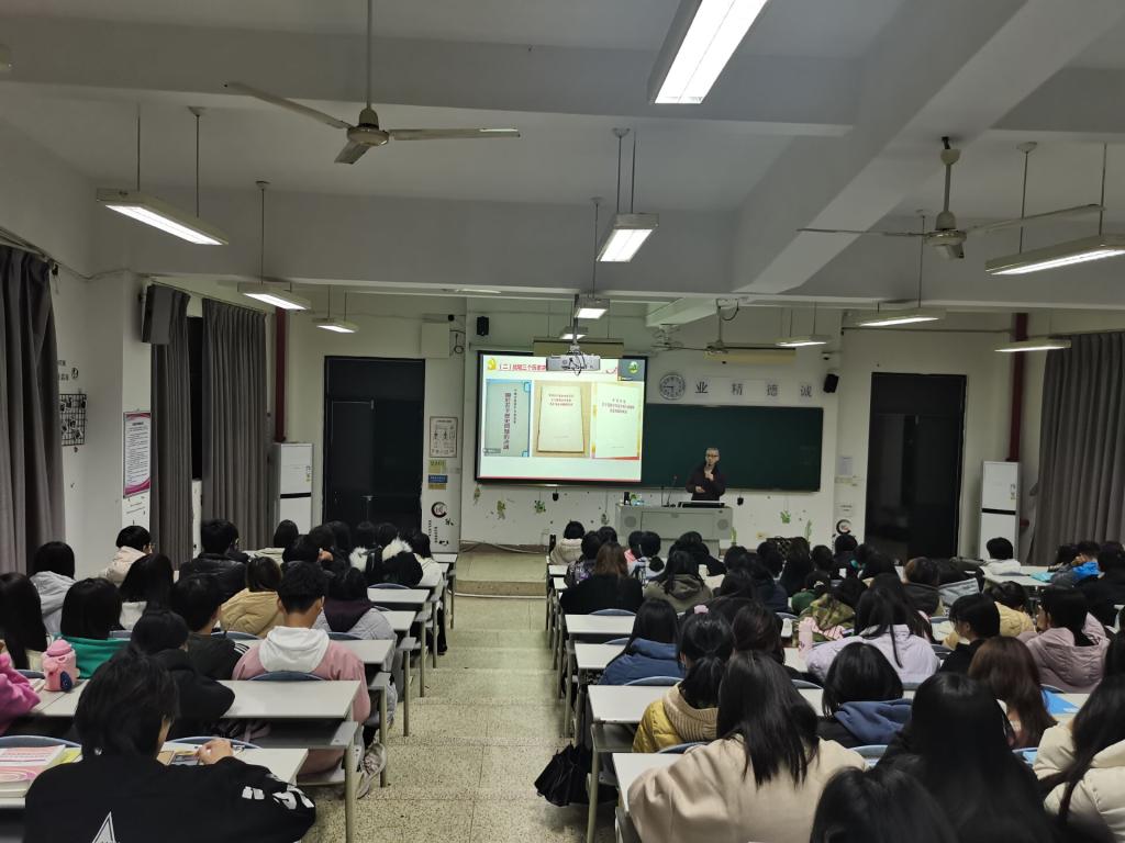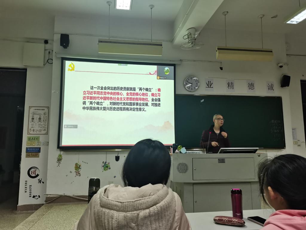 講座分兩個場地同時進行,教學樓109為主講會場,約160名學生現(xiàn)場聆聽,教學樓111為分會場,約100名學生通過騰訊會議觀看講座。此次講座資料詳實,內(nèi)容豐富,講授形象生動,同學們受益匪淺。大家深刻領(lǐng)會到學習黨的十九屆六中全會精神的重大意義,加深了對黨的認識與理解,認識到了新中國的來之不易、中國特色社會主義來之不易,更加堅定走中國特色社會主義道路的決心,更加堅定、更加自覺地踐行初心使命,在新時代更好堅持和發(fā)展中國特色社會主義。
