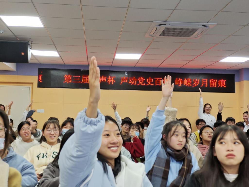 在情感和聲音的交織震撼中,所有參賽選手將精心準備的配音作品一一展現(xiàn)?!澳莻€黑暗的年代,看不到一點光亮,活著都艱難,為什么他們還要去舍生赴死。后來我知道了,他們就是想燃燒自己來當這唯一的光亮,照亮當時,驚醒世人。這光亮著,直到多年后的現(xiàn)在,我不用茍活著?!标惢?、黃惠琳和張舒榮團隊全情投入,聲情并茂地演繹,深情地刻畫影片中人物角色的形象,讓全場觀眾沉浸在“最干凈的靈魂”洗禮中,最終脫穎而出,摘得一等獎。比賽期間還穿插黨史知識搶答,現(xiàn)場觀眾搶答熱烈。