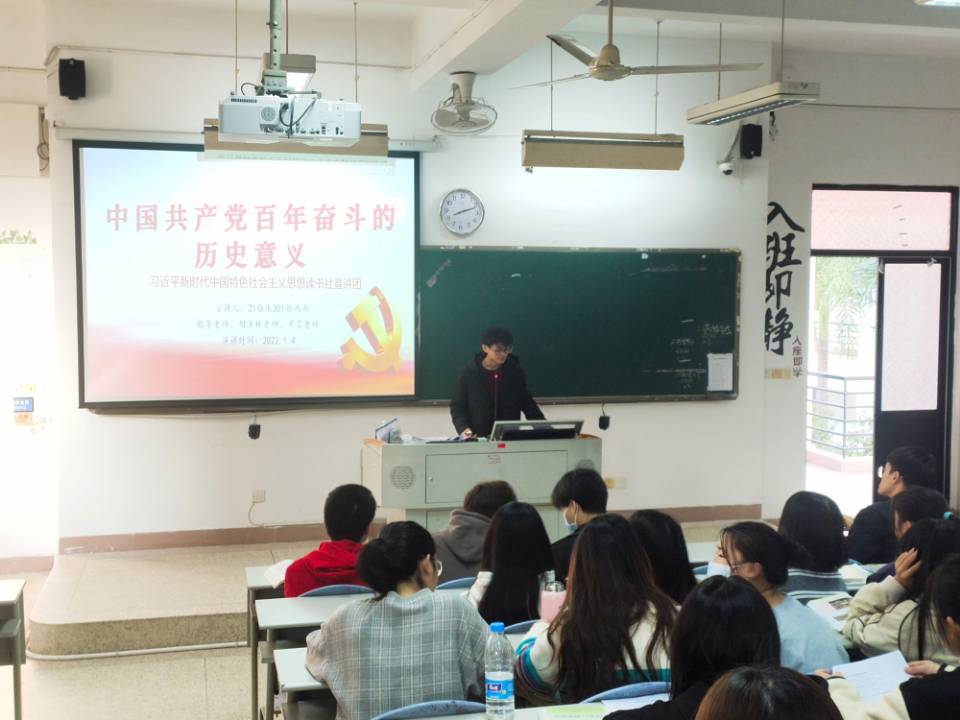 為引導(dǎo)青年學(xué)生了解中國共產(chǎn)黨百年來的輝煌成就,2022年1月4日,習(xí)近平新時代中國特色社會主義思想讀書社宣講團在胡濟林、羅蕓老師的指導(dǎo)下,在教學(xué)樓209為21臨床301班、21臨床302班、21康復(fù)303班開展“中國共產(chǎn)黨百年奮斗的歷史意義”專題宣講。