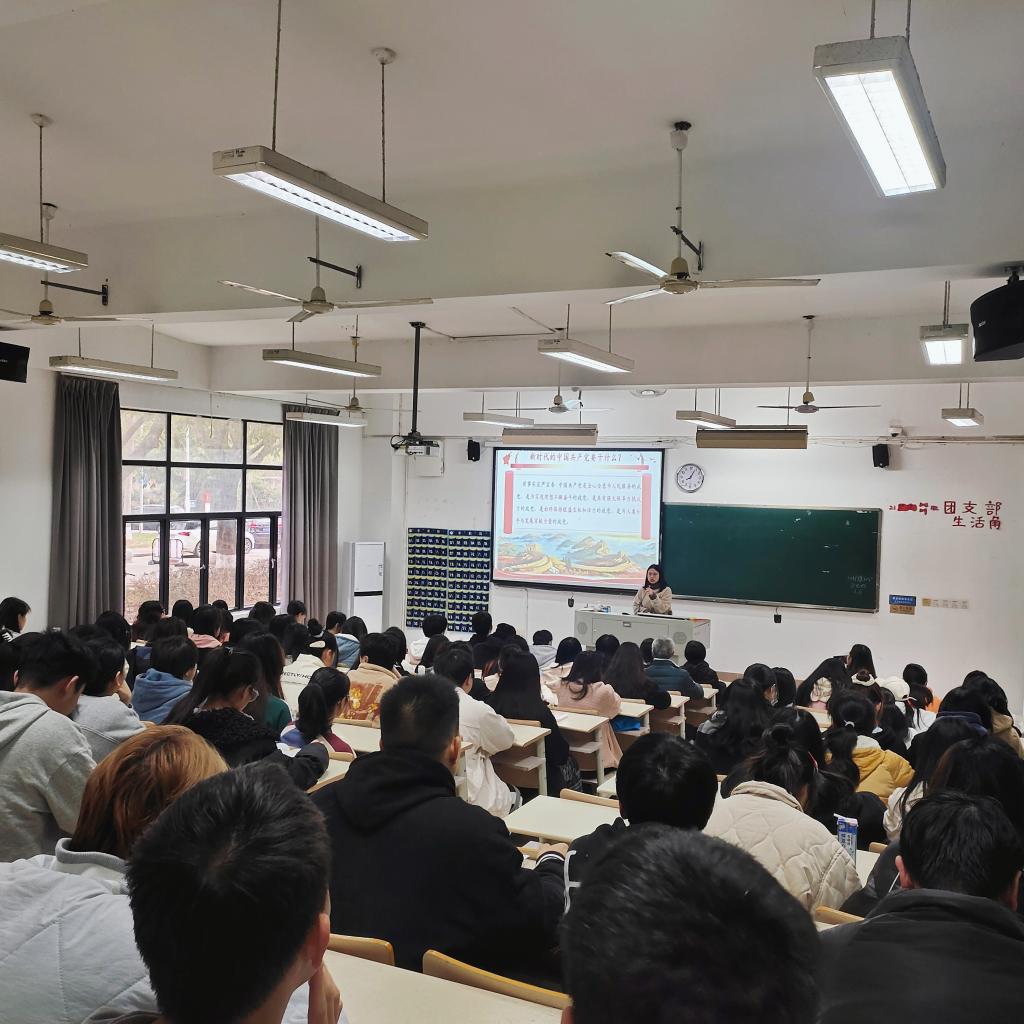 2022年1月7日,習(xí)近平新時(shí)代中國(guó)特色社會(huì)主義思想讀書社宣講團(tuán)在胡濟(jì)林老師的組織下,到教學(xué)樓111為21藥產(chǎn)301、302班開展“深刻領(lǐng)會(huì)黨百年奮斗的歷史經(jīng)驗(yàn)”專題宣講。