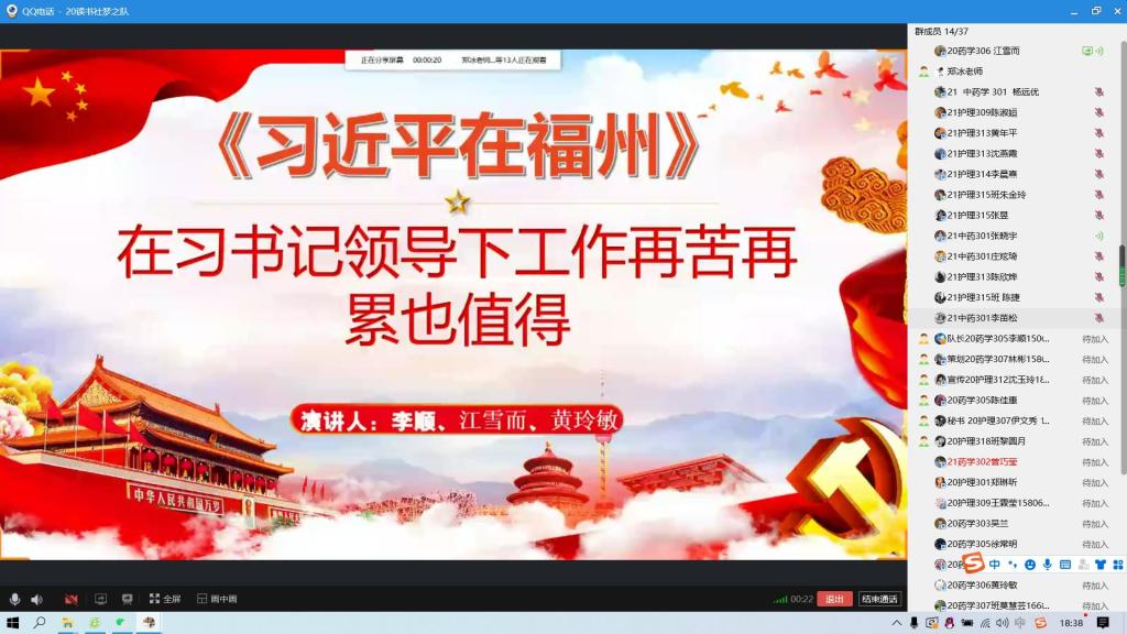 2022年3月28日下午,因?yàn)橐咔橛忠淮渭又?,?mèng)之隊(duì)的成員們?nèi)缂s聚集在線上,本次學(xué)習(xí)由夢(mèng)之隊(duì)指導(dǎo)老師鄭冰主持,全體讀書社夢(mèng)之隊(duì)成員參加,由李順、江雪而、黃玲敏三位同學(xué)主講。