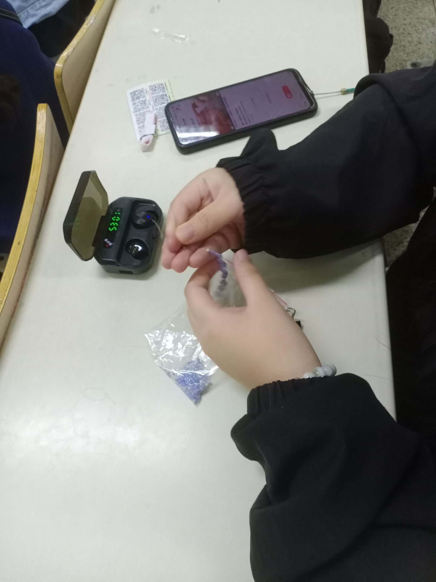 活動首先由社團(tuán)干事鄧芳?xì)g對手鏈編織技藝的來源與演變進(jìn)行了介紹,并詳細(xì)講解了制作春日手鏈的方法與技巧,隨后社團(tuán)成員根據(jù)講解的制作方法進(jìn)行手鏈編織。同學(xué)們發(fā)揮各自的想象力,將色彩艷麗的珠子匯聚成各式各樣的小雛菊,手繩上不同色彩相交匯,形成晶瑩剔透的手鏈,手鏈花色各異,展現(xiàn)出不同的氣質(zhì)。