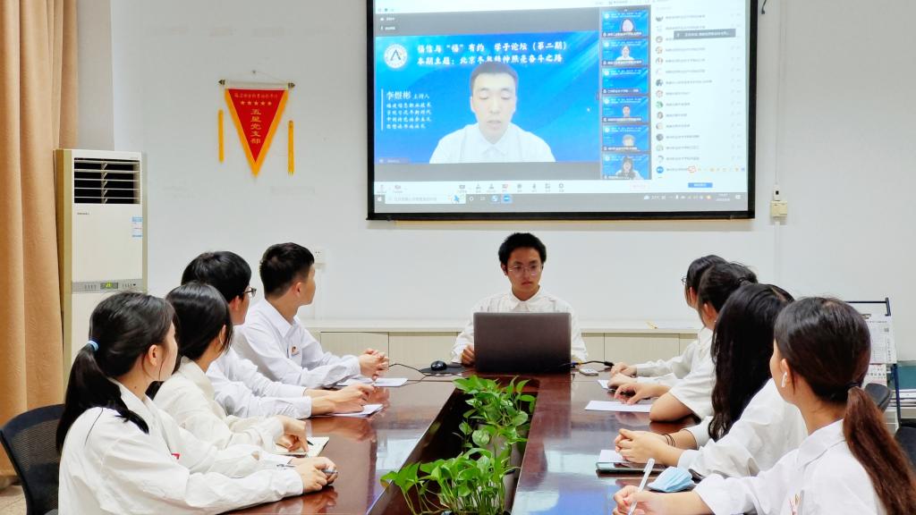 我校習(xí)近平新時代中國特色社會主義思想讀書社社長葉鎵萍作為交流代表,參與在線交流,她指出:“雙奧”帶來的“C位”視角,讓中國青年擁有了“平視世界”的民族自信,并深切感悟到“兩個變局”下的人生際遇與時代責(zé)任。中國青年要堅定信念,彰顯“勇于擔(dān)當(dāng)”色彩,學(xué)習(xí)冬奧志愿者甘于奉獻(xiàn),將青春“小我”融入祖國“大我”;中國青年要頑強拼搏,彰顯“艱苦奮斗”色彩,學(xué)習(xí)奧運健兒頑強拼搏,以永不懈怠的奮斗姿態(tài)投入,攀高峰、立事業(yè)的實踐磨礪中。