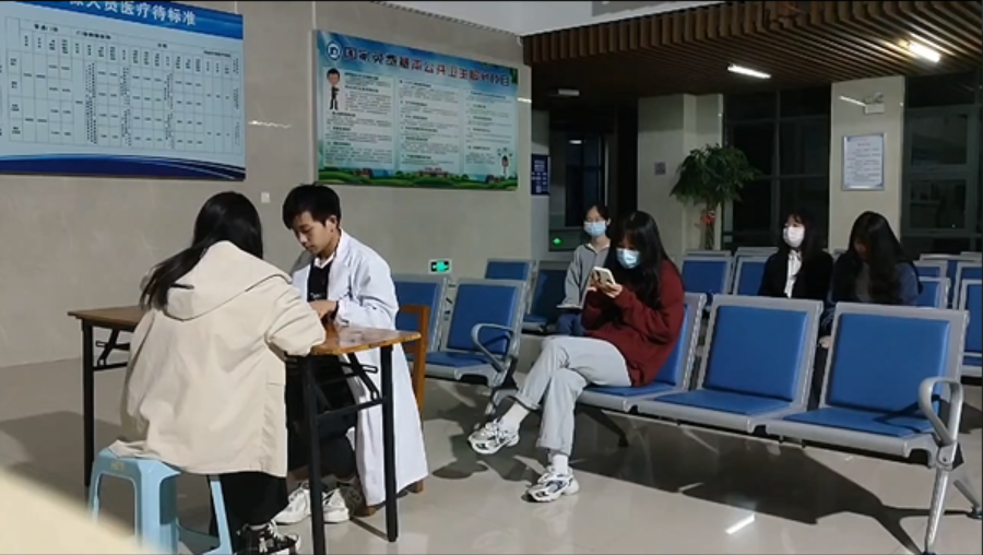 江洪還組織同學(xué)們開(kāi)展了醫(yī)學(xué)禮儀訓(xùn)練。首先由3名成員情景模擬某社區(qū)醫(yī)院某醫(yī)生、護(hù)士的診療、服務(wù)過(guò)程。隨后,其他觀摩成員通過(guò)觀摩,尋找在角色扮演中醫(yī)生、護(hù)士出現(xiàn)的不合醫(yī)學(xué)禮儀的行為,并運(yùn)用自己所學(xué)的醫(yī)學(xué)禮儀知識(shí)糾正錯(cuò)誤。最后,同學(xué)們展示了語(yǔ)言禮儀、穿戴禮儀、坐姿、站姿、蹲姿等五個(gè)方面的基本的醫(yī)學(xué)禮儀。