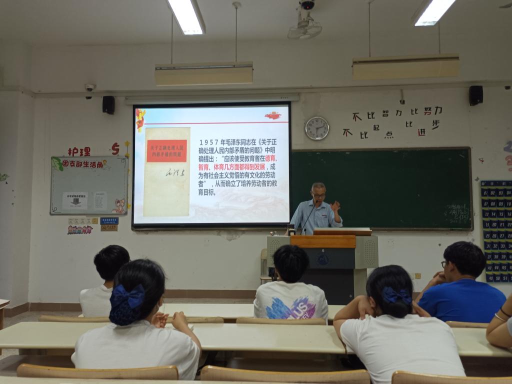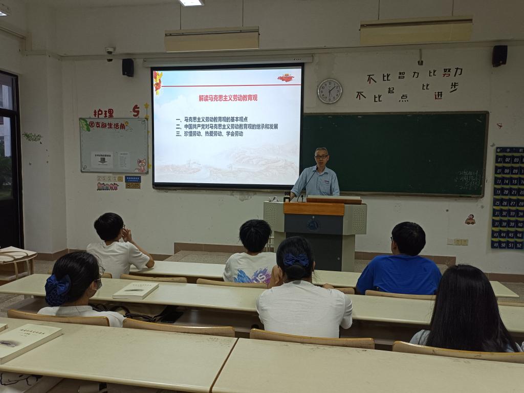 同學們到達教學樓112教室簽到后,由胡濟林進行《解讀馬克思主義勞動教育觀》專題的報告,胡老師以解讀的方式,從馬克思主義勞動觀的多個方面介紹勞動精神的豐富內涵,介紹了中國共產黨對馬克思主義勞動教育觀繼承、發(fā)展,并結合大學生實際談如何珍惜勞動、熱愛勞動、學會勞動等基本內容,從而培養(yǎng)大學生的勞動精神。胡濟林指出,勞動創(chuàng)造人本身,一切勞動,無論是體力勞動還是腦力勞動,都值得被尊重和鼓勵,大學生要珍惜他人的勞動成果,增強勞動觀念,提高勞動技能,做到德智體美勞全面發(fā)展。