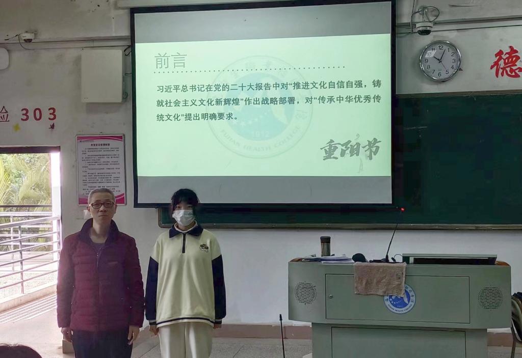 習(xí)近平總書記在黨的二十大報(bào)告中對“推進(jìn)文化自信自強(qiáng),鑄就社會主義文化新輝煌”作出戰(zhàn)略部署,對“傳承中華優(yōu)秀傳統(tǒng)文化”提出明確要求。為了更好地弘揚(yáng)中華優(yōu)秀傳統(tǒng)文化,2023年3月7日,習(xí)近平新時(shí)代中國特色社會主義思想讀書社宣講團(tuán)成員在胡濟(jì)林老師的組織下,到醫(yī)技樓212為19美容501班、19衛(wèi)管501班、19智能醫(yī)療裝備501班的同學(xué)們開展線下宣講交流。