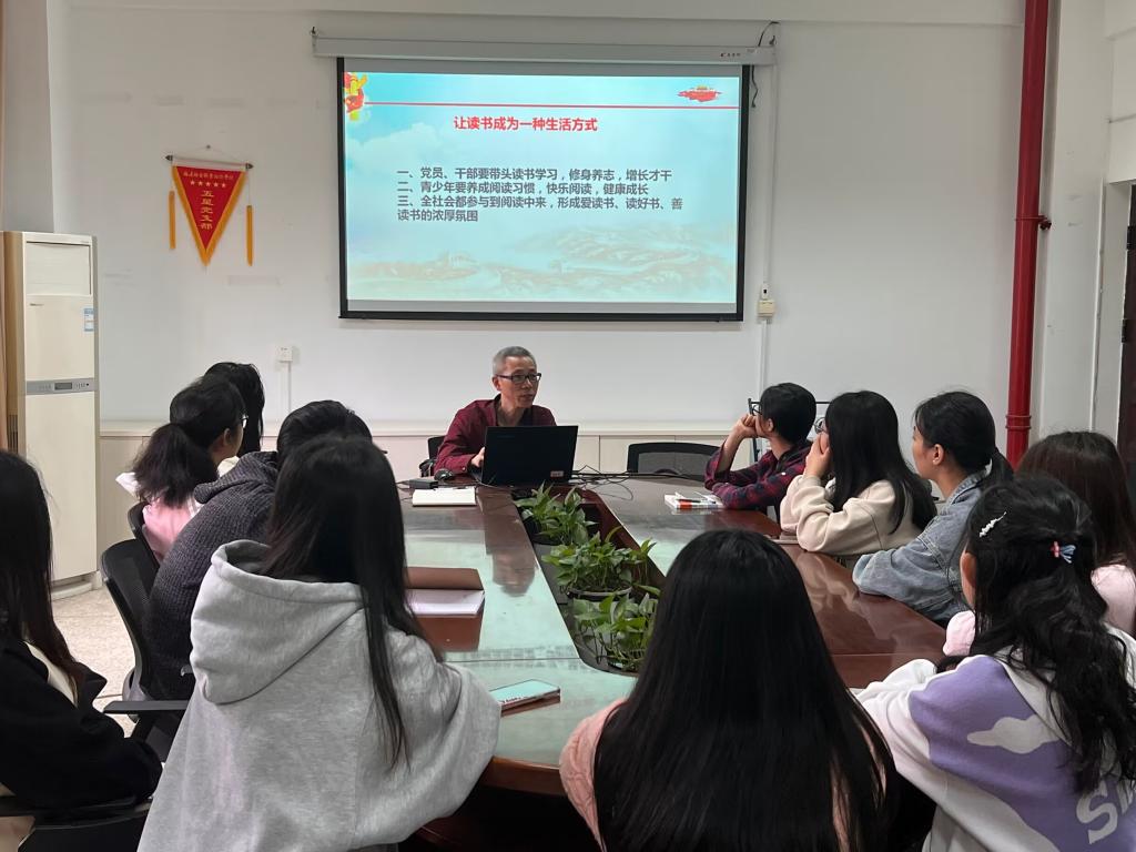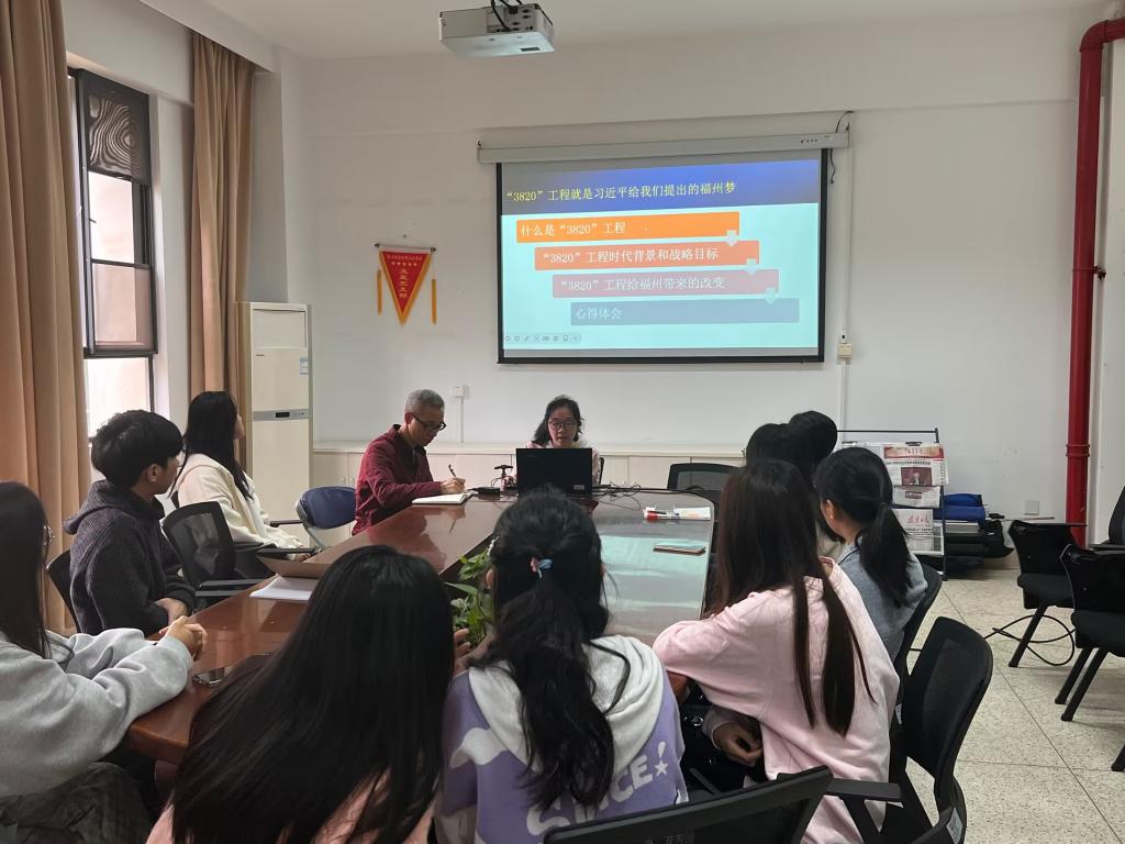 首先,胡濟林作《讓讀書成為一種生活方式》的專題報告,他結合習近平總書記無論是青少年時期當知青,還是主政福州時期,直至后來到黨中央工作,都酷愛讀書的事例,從干部要帶頭讀書學習、青少年要養(yǎng)成閱讀習慣、全社會都參與到閱讀中來等方面,引導同學們養(yǎng)成讀書的好習慣,把讀書當成一種生活方式、一種工作責任、一種精神追求。接著,兩組同學分享《習近平在福州》的感悟。周藝婷、王元同學對“3820”戰(zhàn)略工程進行詳細解讀,陳藍馨、黃怡萍同學分享《習近平在福州》第十三篇的學習心得體會,介紹了5個經典案例和習近平的感人話語。最后,讀書社副社長兼青春隊隊長彭俊平對下階段的學習做了布置。