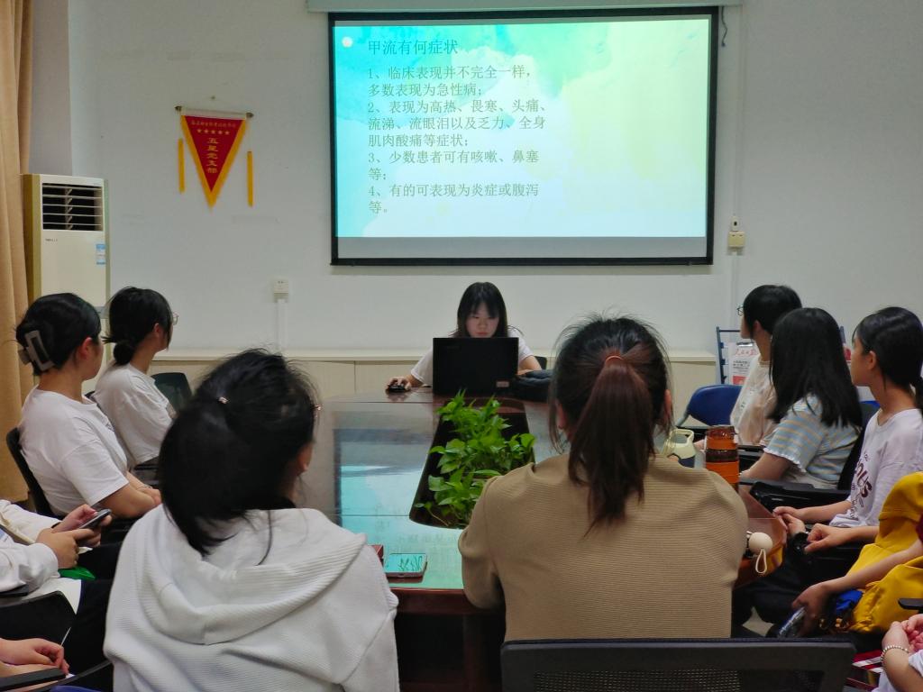 在健康知識宣講環(huán)節(jié),22助產(chǎn)303班蔡湘怡、22口腔303班馮淑晴、22口腔303班黃璇同學分別以進行預防甲流、預防中暑、蛇咬傷的處理等為主題展開宣講。