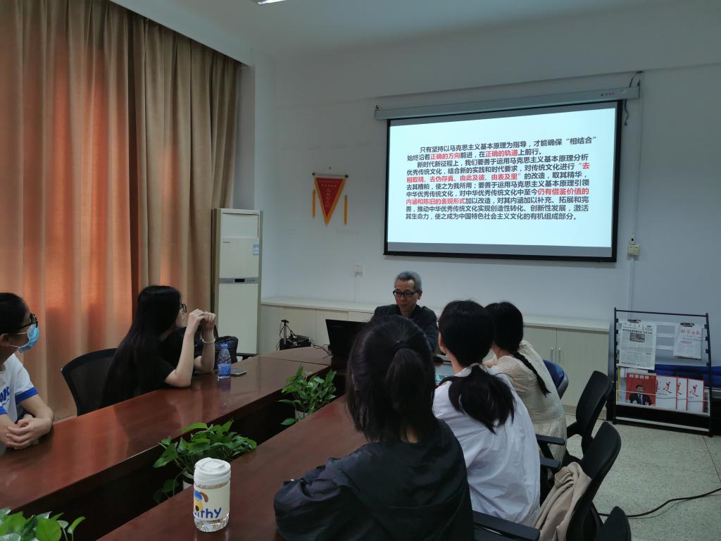 首先,胡濟(jì)林作《堅(jiān)持把馬克思主義基本原理同中華優(yōu)秀傳統(tǒng)文化相結(jié)合》的專題報(bào)告,他首先帶領(lǐng)同學(xué)們學(xué)習(xí)黨的二十大報(bào)告關(guān)于“兩個(gè)結(jié)合”的重要論述,指出堅(jiān)持和發(fā)展馬克思主義,必須同中國(guó)具體實(shí)際相結(jié)合,必須同中華優(yōu)秀傳統(tǒng)文化相結(jié)合。接著,他從堅(jiān)持以馬克思主義基本原理為指導(dǎo),堅(jiān)守中華優(yōu)秀傳統(tǒng)文化立場(chǎng),以中華優(yōu)秀傳統(tǒng)文化滋養(yǎng)馬克思主義基本原理,立足當(dāng)代中國(guó)現(xiàn)實(shí),解決中國(guó)的實(shí)際問(wèn)題等角度,來(lái)闡述馬克思主義基本原理如何同中華優(yōu)秀傳統(tǒng)文化相結(jié)合,他號(hào)召同學(xué)們要不斷堅(jiān)定歷史自信、文化自信,不斷把馬克思主義思想精髓同中華優(yōu)秀傳統(tǒng)文化精華貫通起來(lái)。