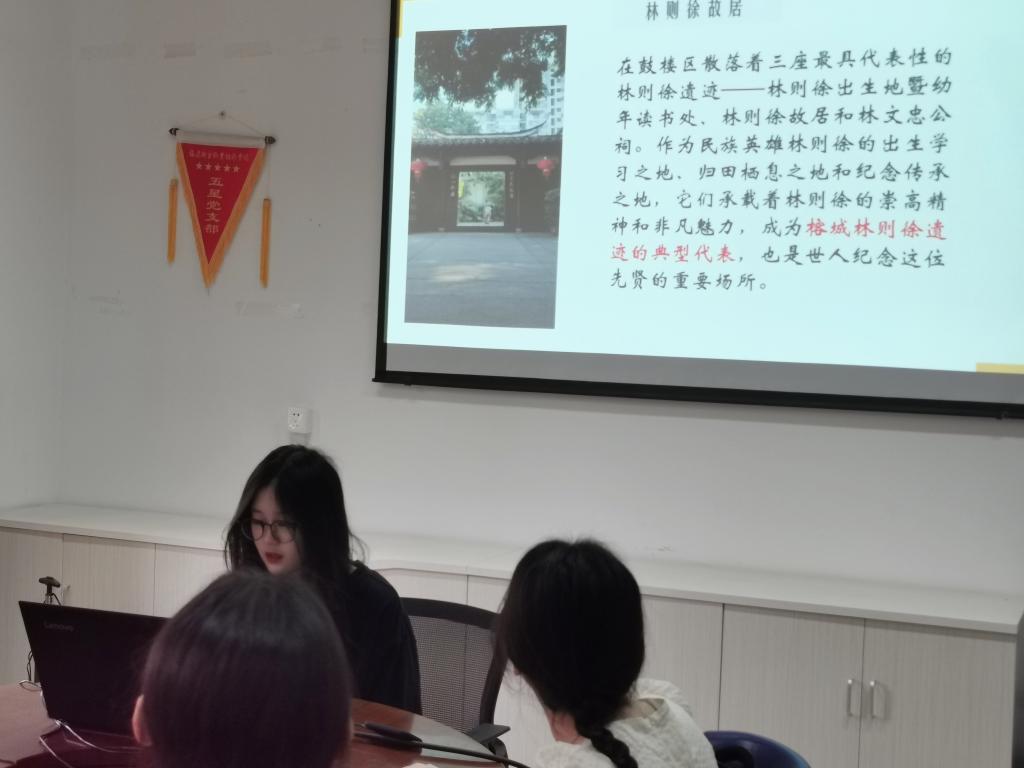 胡濟(jì)林報(bào)告結(jié)束后,由兩組同學(xué)分享學(xué)習(xí)《習(xí)近平在福州》的學(xué)習(xí)體會(huì),張瑩同學(xué)分享《解放思想,貴在擔(dān)當(dāng)》,她呼吁新時(shí)代的青年,必須站穩(wěn)政治立場(chǎng),厚植人民情懷,樹立正確的世界觀、人生觀、價(jià)值觀。吳文穎、黃明珍小組分享《遺跡的守護(hù)》,由吳文穎介紹了林則徐先生遺跡的保護(hù)、習(xí)近平同志如何推動(dòng)文化遺產(chǎn)保護(hù)工作。最好,青春隊(duì)干事謝秀怡對(duì)下階段工作做了安排。