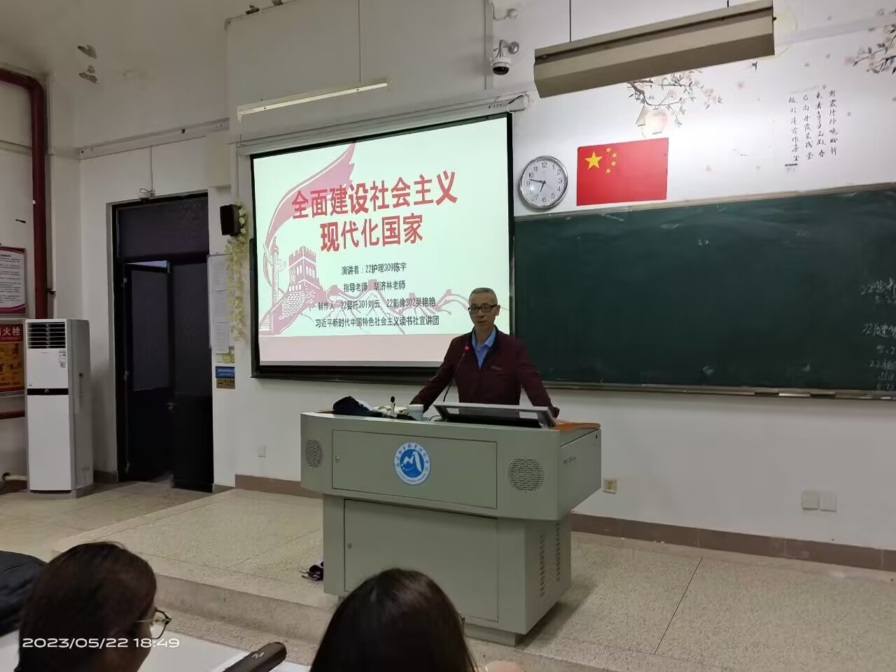 為了全面學(xué)習(xí)習(xí)近平新時代中國特色社會主義思想和黨的二十大精神,2023年5月22日,習(xí)近平新時代中國特色社會主義思想讀書社宣講團(tuán)成員在胡濟(jì)林老師的組織下,到教學(xué)樓310為四史班學(xué)生開展線下宣講交流。