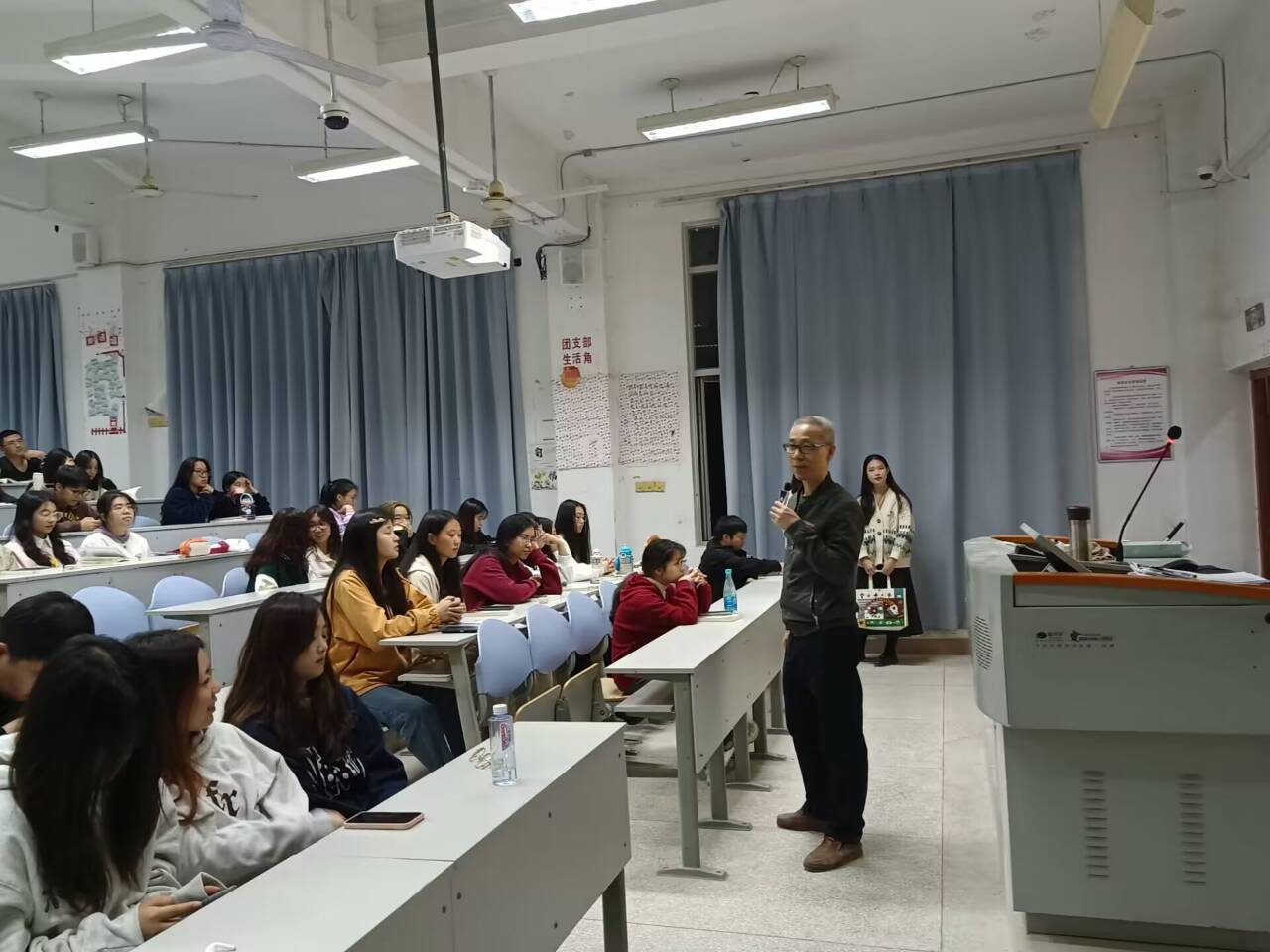 黨的十八大以來(lái),習(xí)近平總書(shū)記把宣傳思想文化工作擺在治國(guó)理政的重要位置,對(duì)文化傳承發(fā)展等各個(gè)領(lǐng)域,進(jìn)行統(tǒng)籌謀劃、分類(lèi)指導(dǎo)、部署推進(jìn),推動(dòng)宣傳思想文化工作高質(zhì)量發(fā)展。2023年11月27日,習(xí)近平新時(shí)代中國(guó)特色社會(huì)主義思想讀書(shū)社宣講團(tuán)成員在胡濟(jì)林老師的組織下,到護(hù)理一階同學(xué)們開(kāi)展線下宣講交流。