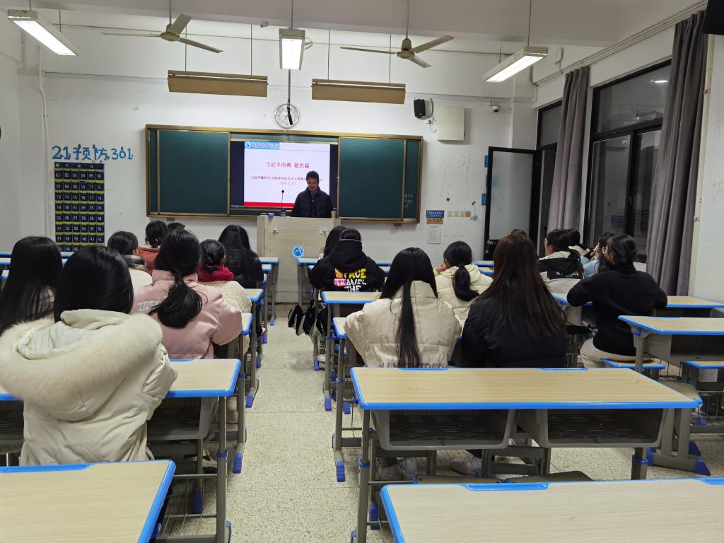 為更好地學(xué)習(xí)習(xí)近平新時代中國特色社會主義思想,傳承中華優(yōu)秀傳統(tǒng)文化,2024年2月27日,習(xí)近平新時代中國特色社會主義思想讀書社社團(tuán)選修課《習(xí)近平用典》開講第一講“敬民篇”,由江洪老師負(fù)責(zé)主講,社團(tuán)選課學(xué)生按時參加了學(xué)習(xí)。