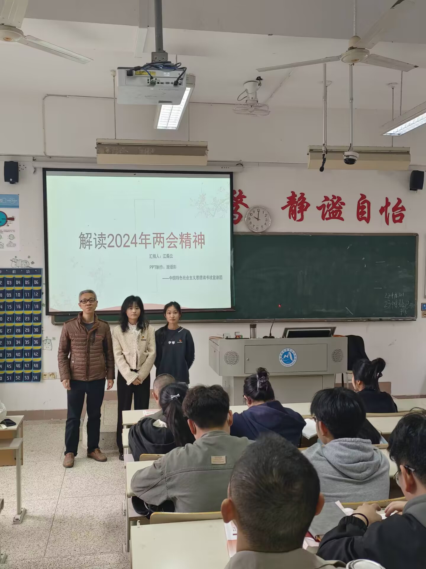 兩會(huì)精神具有鮮明的時(shí)代特征和針對(duì)性,它反映了黨和國(guó)家在新時(shí)期的工作重點(diǎn)和發(fā)展方向。在兩會(huì)精神的指導(dǎo)下,各級(jí)政府和社會(huì)各界應(yīng)該緊密團(tuán)結(jié)在一起,共同為實(shí)現(xiàn)國(guó)家的繁榮富強(qiáng)和人民的幸福安康而努力奮斗。學(xué)習(xí)貫徹兩會(huì)精神是當(dāng)代大學(xué)生的責(zé)任和義務(wù)。為了更好地學(xué)習(xí)兩會(huì)精神,2024年4月10日,習(xí)近平新時(shí)代中國(guó)特色社會(huì)主義思想讀書(shū)社宣講團(tuán)成員在胡濟(jì)林老師的組織下,到教學(xué)樓114為23中藥301、302班的同學(xué)們開(kāi)展線下宣講交流。