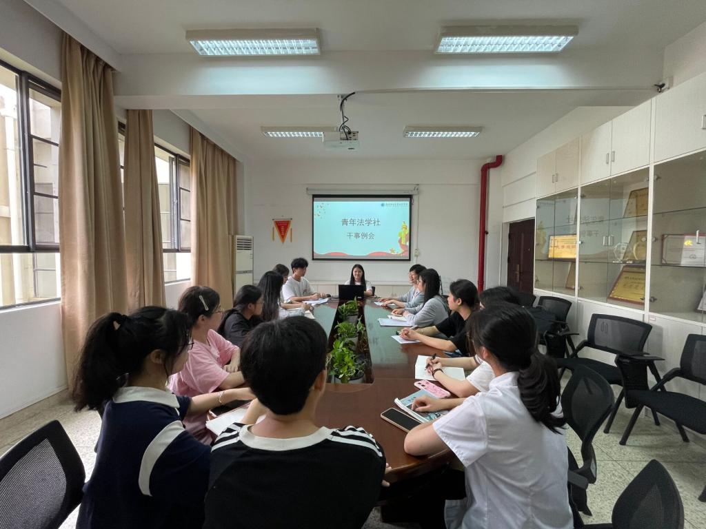 2024年6月13日,青年法學(xué)社在厚德樓107會(huì)議室順利召開了第一次干事例會(huì),會(huì)議由指導(dǎo)老師鄒亞彤主持,鄭冰老師、陳菲菲社長、許靜雯、李浩東副社長以及全體干事參與會(huì)議。