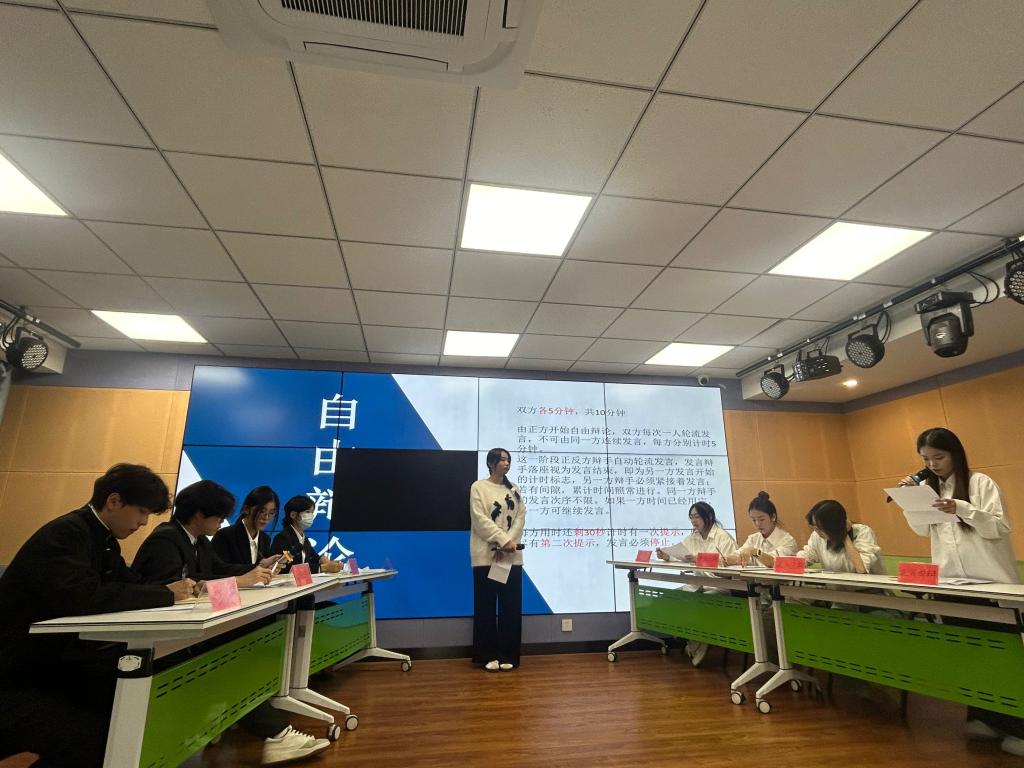 賽場(chǎng)上,辯手們你來(lái)我往,妙語(yǔ)連珠。正方一辯手以沉著冷靜的態(tài)度開(kāi)場(chǎng),用一系列精確的數(shù)據(jù)和實(shí)證;反方一辯手則不甘示弱,她以鋒利的邏輯和生動(dòng)的例證反駁對(duì)方觀點(diǎn),引得全場(chǎng)陣陣掌聲。自由辯論環(huán)節(jié)尤為激烈,每一次駁論都讓在場(chǎng)觀眾屏息凝視。