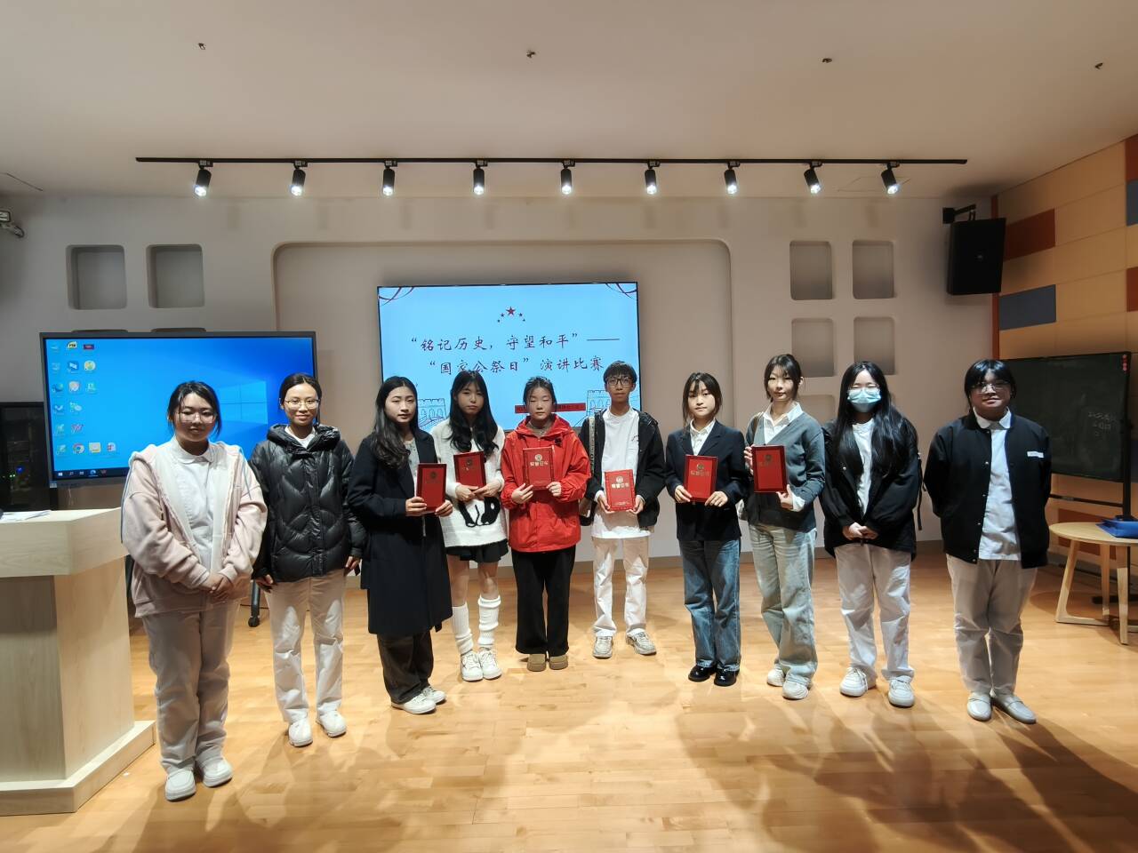 2024年12月12日,時(shí)代先鋒協(xié)會(huì)于師生活動(dòng)中心合唱室舉辦以“銘記歷史,守望和平”為主題的國(guó)家公祭日演講比賽,馬克思主義學(xué)院丁愛(ài)芝老師、張晨琳老師及社團(tuán)負(fù)責(zé)人擔(dān)任評(píng)委。