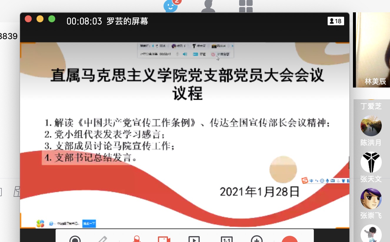 1月28日上午,直屬馬克思主義學(xué)院黨支部在黨支部Q群召開線上黨員大會(huì),會(huì)議組織學(xué)習(xí)《中國(guó)共產(chǎn)黨宣傳工作條例》(以下簡(jiǎn)稱《條例》)和傳達(dá)全國(guó)宣傳部長(zhǎng)會(huì)議精神,本次會(huì)議由直屬馬克思主義學(xué)院黨支部副書記來朋珍主持,支部全體黨員參加了會(huì)議。