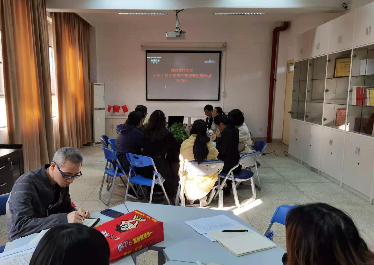為深入貫徹落實習近平總書記在紀念中國人民志愿軍抗美援朝出國作戰(zhàn)70周年大會上的重要講話精神,深入開展“四史”學習教育,大力弘揚偉大的抗美援朝精神,2020年12月3日,直屬馬克思主義學院黨支部開展主題黨日活動,組織支部全體教師黨員在行政樓107會議室集中觀看學習了專題紀錄片《為了和平》。