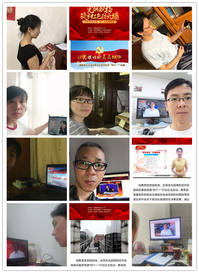 6月24日上午9:00,直屬馬克思主義學(xué)院黨支部組織全體教師黨員通過電腦端、手機(jī)端等網(wǎng)絡(luò)途徑,在辦公室、居家觀看認(rèn)真收看學(xué)習(xí)了“黨旗飄揚 筑牢紅色防火墻”高校黨組織戰(zhàn)“疫”示范微黨課第2講網(wǎng)上直播。