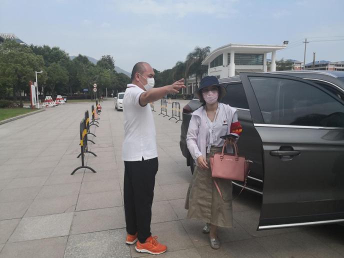 馬克思主義學(xué)院院長(zhǎng)熊美蘭扮演學(xué)生家長(zhǎng),自駕驅(qū)車帶領(lǐng)扮演學(xué)生的顏冰鳳老師來(lái)到學(xué)校,到校門口后,學(xué)生家長(zhǎng)就此離開校園。