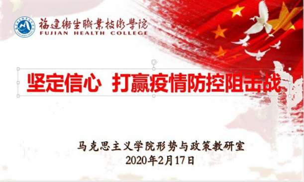 福建衛(wèi)生職業(yè)技術(shù)學(xué)院于2月17日線上教學(xué)開學(xué)第一天,開啟一周時間面向全校大學(xué)生疫情防控網(wǎng)絡(luò)思政第一課。