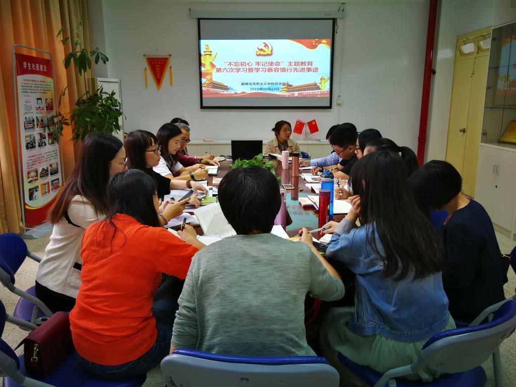 為了更好的“守初心,擔(dān)使命,找差距,抓落實”,學(xué)習(xí)落實慕容慎行同志先進事跡,發(fā)揚慕容慎行高尚精神,2019年10月24日上午直屬馬克思主義學(xué)院開展“不忘初心、牢記使命”主題教育第六次專題學(xué)習(xí)暨學(xué)習(xí)慕容慎行先進事跡活動。本次主題教育由直屬馬克思主義學(xué)院黨支部書記熊美蘭主持,馬院全體教師黨員參加。