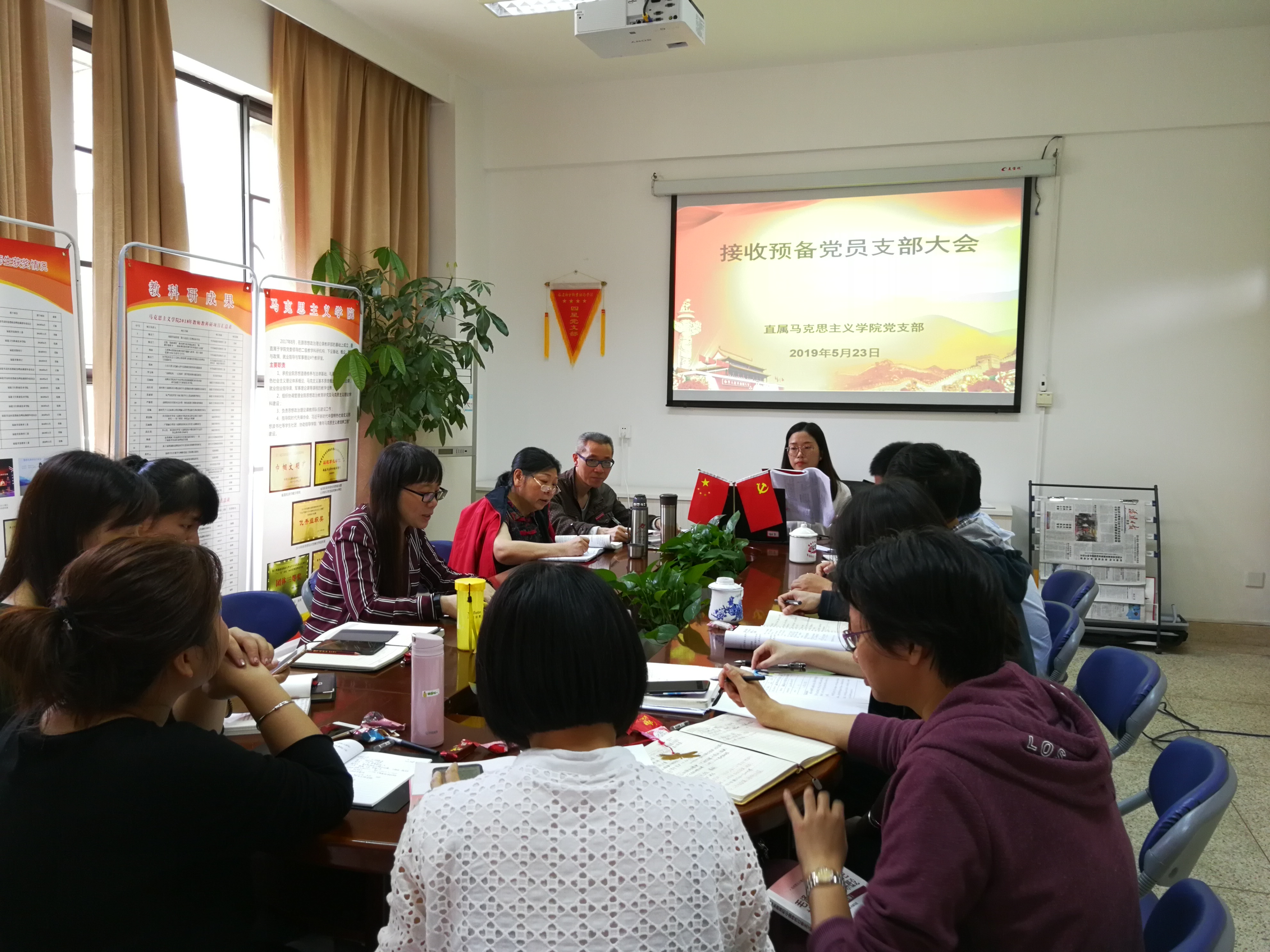 2019年5月23日上午,直屬馬克思主義學院黨支部在馬克思主義學院會議室召開接收預備黨員大會。會議由支部書記熊美蘭同志主持,支部12名正式黨員同志全部與會。