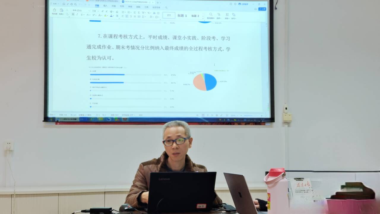 會上,習(xí)近平新時代中國特色社會主義思想概論教研室、思想道德與法治教研室、形勢與政策教研室主任結(jié)合問卷調(diào)查結(jié)果、期中教學(xué)評價、日常教學(xué)反饋,將師情生情進行了深入分析和總結(jié)。他們紛紛表示,在今后的教學(xué)工作中將帶領(lǐng)好教研室全體教師深入貫徹落實意識形態(tài)工作責任制,加強黨對意識形態(tài)工作的領(lǐng)導(dǎo),充分發(fā)揮意識形態(tài)工作思想引領(lǐng)、輿論推動、精神激勵的重要作用,確保校園意識形態(tài)安全。