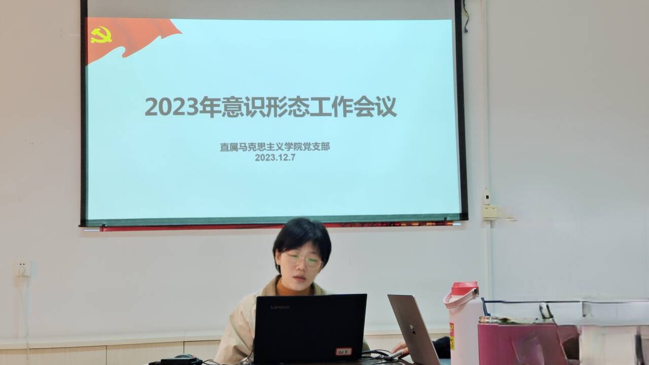 2023年12月7日,直屬馬克思主義學(xué)院黨支部在行政樓107召開2023年意識形態(tài)工作會議,會議由黨支部書記熊美蘭主持,支部全體黨員參加了會議。