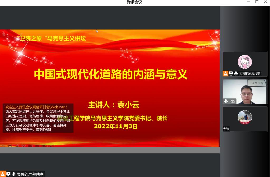 為引導(dǎo)我校師生堅(jiān)持以中國(guó)式現(xiàn)代化全面推進(jìn)中華民族偉大復(fù)興,不懈奮斗,勇毅前行,向著第二個(gè)百年奮斗目標(biāo)邁進(jìn),2022年11月3日,我校馬克思主義學(xué)院邀請(qǐng)福建工程學(xué)院袁小云教授作《中國(guó)式現(xiàn)代化道路的內(nèi)涵與意義》專題講座。講座由馬克思主義學(xué)院院長(zhǎng)熊美蘭主持,馬克思主義學(xué)院全體教師及部分學(xué)生代表參加。