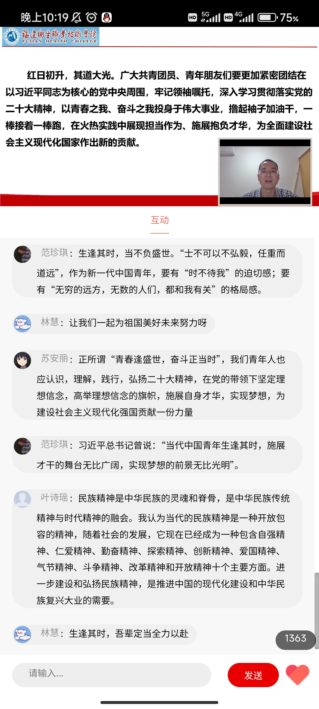 2022年11月28日晚,習(xí)近平新時(shí)代中國特色社會(huì)主義思想讀書社致遠(yuǎn)隊(duì)通過學(xué)習(xí)通線上平臺(tái)集中開展“永遠(yuǎn)跟黨走 奮進(jìn)新征程——學(xué)習(xí)黨的二十大精神”主題宣講活動(dòng),由指導(dǎo)老師江洪主講,2022級(jí)讀書社致遠(yuǎn)隊(duì)新老成員30多人按時(shí)參加了活動(dòng)。