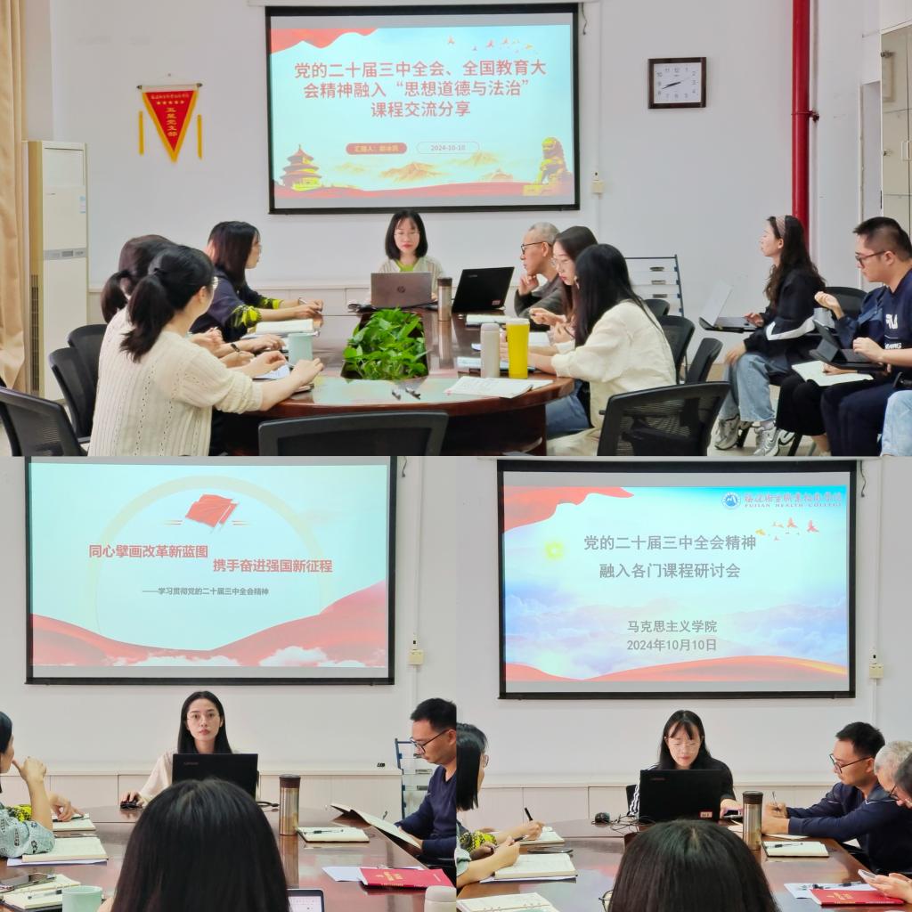 接著,顏冰鳳老師分享了黨的二十屆三中全會(huì)精神融入“思想道德與法治”具體案例,提出要以問(wèn)題為導(dǎo)向,結(jié)合黨的二十屆三中全會(huì)、全國(guó)教育大會(huì)精神和教學(xué)重難點(diǎn)設(shè)置問(wèn)題鏈,精心組合情景式教學(xué)、自主探究、案例分析等多種教學(xué)方式和手段幫助學(xué)生突破教學(xué)重難點(diǎn),提升學(xué)生學(xué)習(xí)實(shí)效。張茵珠老師根據(jù)“形勢(shì)與政策”開(kāi)學(xué)第一課及校領(lǐng)導(dǎo)關(guān)于學(xué)習(xí)貫徹黨的二十屆三中全會(huì)精神專題內(nèi)容所提建議,結(jié)合近期培訓(xùn)學(xué)習(xí)收獲談到要準(zhǔn)確理解黨和國(guó)家理論政策,通過(guò)科學(xué)嚴(yán)謹(jǐn)?shù)姆椒ㄔ诮虒W(xué)過(guò)程中證明并展示政策的正面效應(yīng)。龍慧老師聚焦“高職醫(yī)學(xué)生職業(yè)發(fā)展與就業(yè)創(chuàng)業(yè)”課程進(jìn)行分享交流,黨的二十屆三中全會(huì)和全國(guó)教育大會(huì)為職業(yè)發(fā)展與就業(yè)創(chuàng)業(yè)指明了方向,將會(huì)議精神融入課程,有利于讓學(xué)生明白當(dāng)前國(guó)家就業(yè)形勢(shì)和政策,引導(dǎo)學(xué)生根據(jù)國(guó)家需要和社會(huì)需求規(guī)劃自己的職業(yè),選擇合適的就業(yè)方向。