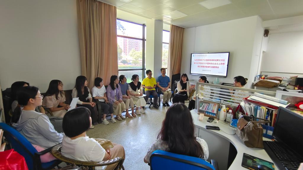 2023年7月7日,馬克思主義學(xué)院在會(huì)議室101召開(kāi)領(lǐng)導(dǎo)班子主題教育調(diào)研成果交流會(huì)暨習(xí)近平新時(shí)代中國(guó)特色社會(huì)主義思想概論課集體備課行前教育會(huì),交流主題教育調(diào)研成果,強(qiáng)調(diào)集體備課會(huì)學(xué)習(xí)紀(jì)律,推進(jìn)調(diào)研成果轉(zhuǎn)化運(yùn)用,推進(jìn)主題教育走深走實(shí)。馬克思主義學(xué)院院長(zhǎng)熊美蘭主持會(huì)議,副院長(zhǎng)來(lái)朋珍、副書(shū)記賴(lài)文金和馬院全體教師參加會(huì)議。