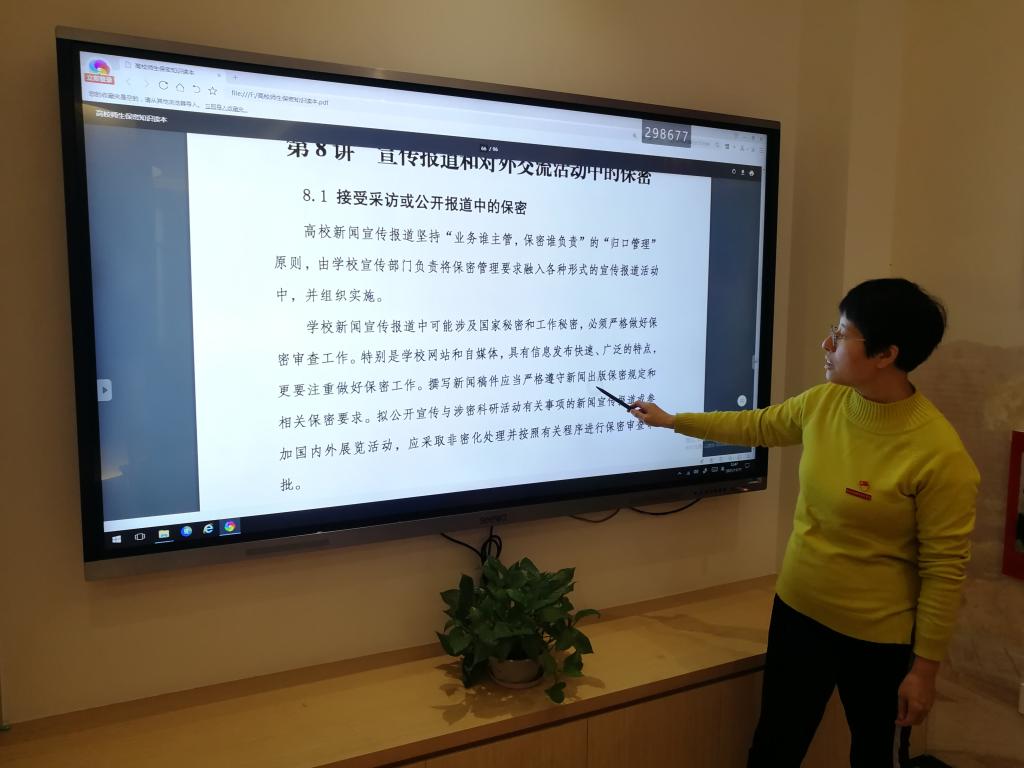 會上,柯瓊鶯還帶領(lǐng)宣傳部全體人員觀看福建省職業(yè)教育院校黨史學(xué)習(xí)教育視頻,學(xué)習(xí)《高校師生保密知識讀本》,并結(jié)合部門業(yè)務(wù)工作,針對讀本中有關(guān)“使用信息設(shè)備中的保密要求”“網(wǎng)絡(luò)活動中的保密”“宣傳報道和對外交流活動中的保密”這三講的內(nèi)容進行重點解讀。