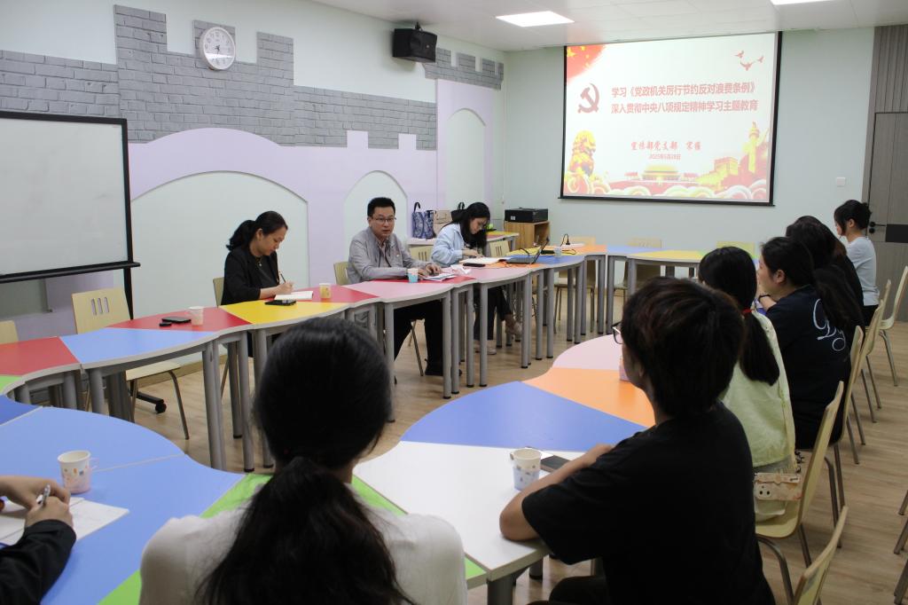 為扎實開展深入貫徹中央八項規(guī)定精神學(xué)習(xí)教育,宣傳部黨支部書記宋維講授主題黨課,介紹了《黨政機關(guān)厲行節(jié)約反對浪費條例》、學(xué)校校史和“健善仁”校園文化等內(nèi)容,倡導(dǎo)學(xué)生積極踐行厲行節(jié)約反對浪費行為,進(jìn)一步了解學(xué)習(xí)學(xué)校悠久校史和弘揚“健善仁”校園文化。