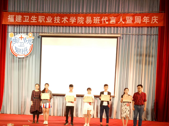 值此學(xué)院易班成立一周年之際,伴隨著易班網(wǎng)絡(luò)文化節(jié)的代言人活動,學(xué)院易班特別籌辦了“易班代言人暨周年慶”晚會。晚會于2017年5月3日晚7點在學(xué)術(shù)廳舉行,蒞臨本次晚會的領(lǐng)導(dǎo)有學(xué)院蘇友新院長,魏立娜副院長,學(xué)工處宋維副處長,林燕副處長,醫(yī)學(xué)技術(shù)系黨總支邱滾忠副書記,管理系艾松軍副書記,學(xué)工處李燕平科長,學(xué)院易班指導(dǎo)老師楊盈以及各系部易班分站指導(dǎo)老師和各班輔導(dǎo)員。
