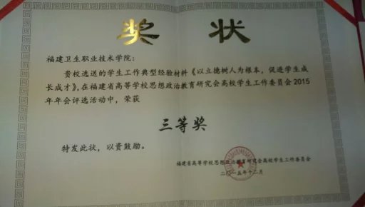 2015年12月,在福建省高等學(xué)校思想政治教育研究會(huì)高校學(xué)生工作委員會(huì)2015年年會(huì)評(píng)選活動(dòng)中,我院學(xué)生工作處葉海處長(zhǎng)選送的學(xué)生工作典型經(jīng)驗(yàn)材料《以立德樹(shù)人為根本,促進(jìn)學(xué)生成長(zhǎng)成才》榮獲三等獎(jiǎng)。特此祝賀!