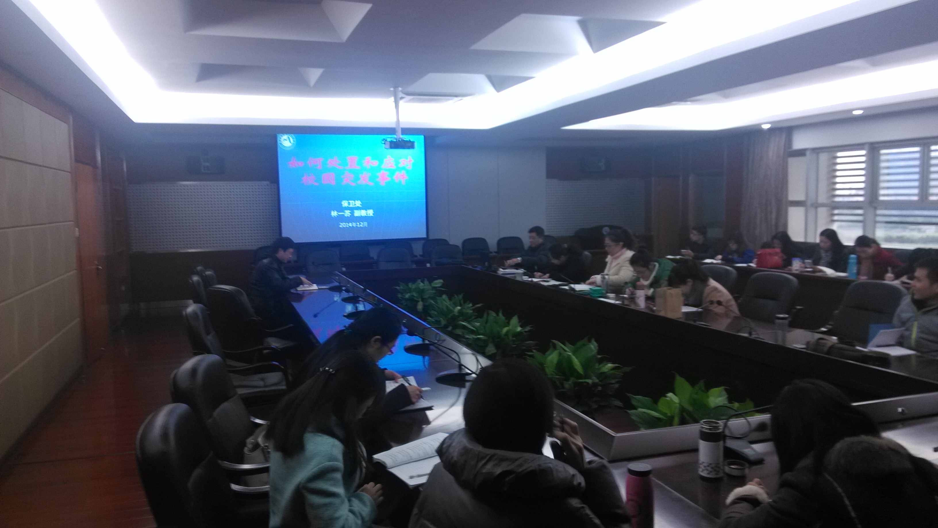 為加強(qiáng)輔導(dǎo)員隊(duì)伍建設(shè),學(xué)工處將職業(yè)能力培訓(xùn)列入日常輔導(dǎo)員例會(huì)內(nèi)容。2014年12月23日上午,學(xué)工處邀請(qǐng)保衛(wèi)處處長(zhǎng)林一蘇為全體專兼職輔導(dǎo)員作了《如何處置和應(yīng)對(duì)校園突發(fā)事件》專題講座。