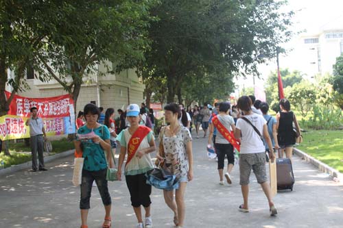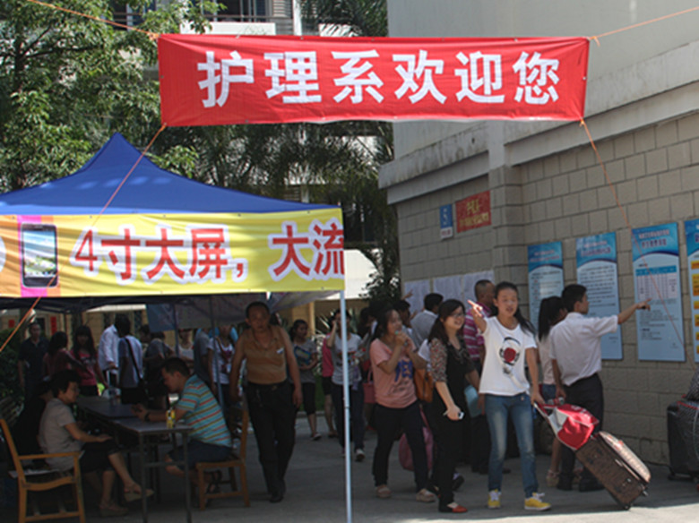 報(bào)到當(dāng)天,學(xué)院為新生提供了方便快捷的服務(wù),在福州火車站、火車南站、汽車南站、北站、洪山橋、西客站等站點(diǎn)設(shè)立新生接待處,迎接新生及家長。負(fù)責(zé)接待工作的志愿者組織新生辦理各項(xiàng)手續(xù),活躍在各迎新點(diǎn)和校園內(nèi),指引新生報(bào)到,幫助新生和家長拿行李,耐心回答他們提出的各種問題。除此之外,各系部積極認(rèn)真的做好新生接待,做到報(bào)到、辦卡、繳費(fèi)等“一條龍”服務(wù),讓同學(xué)們能盡快的熟悉校園環(huán)境。護(hù)理系的迎新志愿者基本上做到一對(duì)一的熱情接待,讓家長和新生有種賓至如歸的感覺;藥學(xué)系迎新志愿者頭戴小紅帽,身穿統(tǒng)一的粉色T恤,活躍在校園的每個(gè)角落,有的解答家長咨詢,有的指引新生,幫忙搬運(yùn)行李;臨床系迎新志愿者為新生準(zhǔn)備了迎新三輪車,幫忙從校門口一直送到報(bào)到點(diǎn),家長和新生都感到很開心;醫(yī)學(xué)技術(shù)系迎新志愿者穿著統(tǒng)一的系服,用滿腔熱情堅(jiān)守在各個(gè)接待地點(diǎn),他們展示出醫(yī)學(xué)技術(shù)系學(xué)生良好的精神風(fēng)貌;公共基礎(chǔ)部每一位迎新志愿者身穿“福建衛(wèi)生職業(yè)技術(shù)學(xué)院公共基礎(chǔ)部”綬帶,讓每一位家長和新生找到回家的感覺。報(bào)到當(dāng)天,我院新生報(bào)到率已達(dá)到百分之九十多。