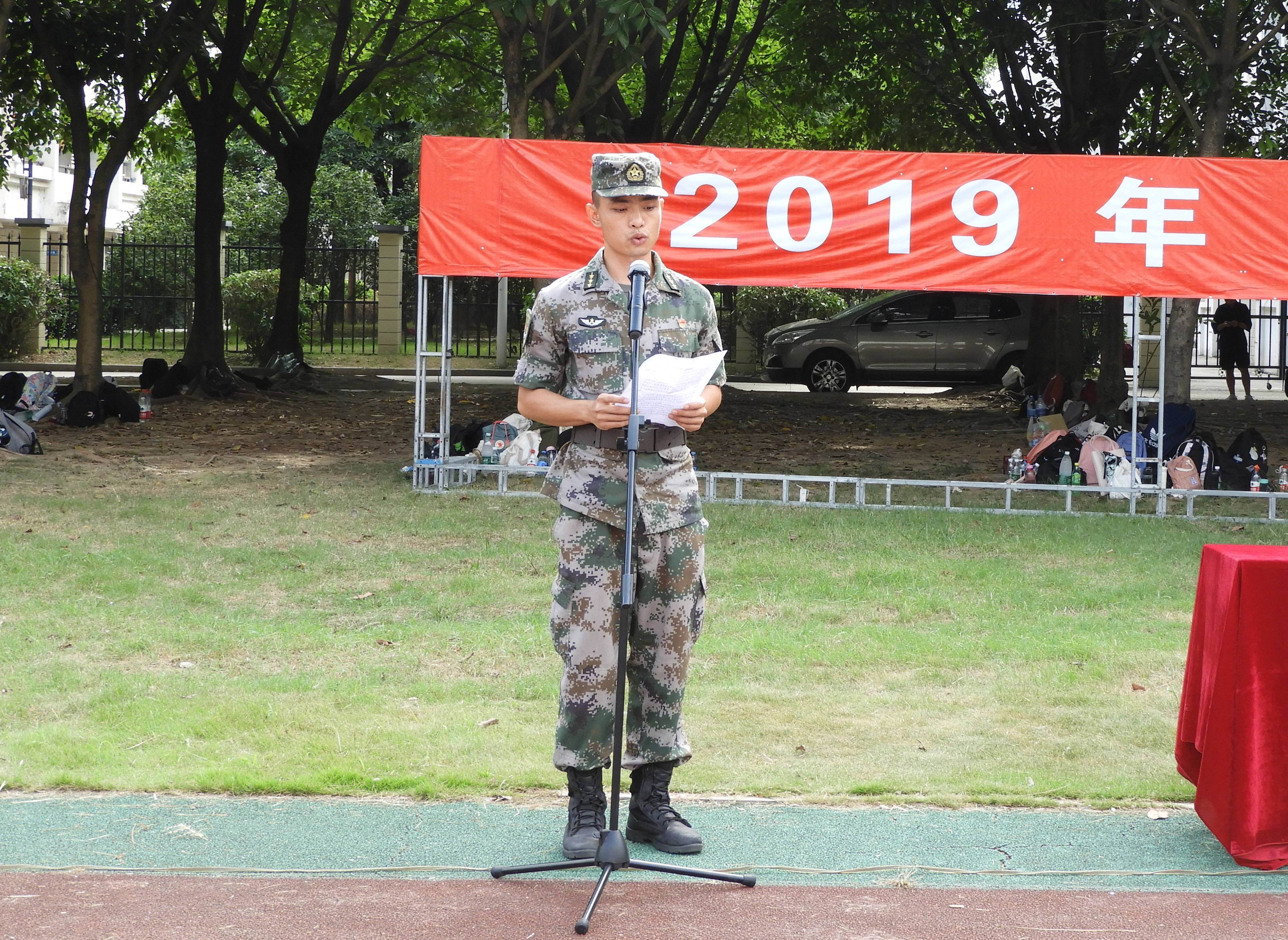 學(xué)工處宋維副處長(zhǎng)向廣大參訓(xùn)學(xué)員介紹了軍訓(xùn)時(shí)間安排、訓(xùn)練內(nèi)容和意義;要求全體參訓(xùn)學(xué)員嚴(yán)守紀(jì)律,爭(zhēng)當(dāng)模范;規(guī)范作息,規(guī)律飲食;合理飲食,特別要注意軍訓(xùn)期間的各類安全。希望全體參訓(xùn)人員要休息好、調(diào)整好、團(tuán)結(jié)好、服從好,順利完成軍訓(xùn)任務(wù)。