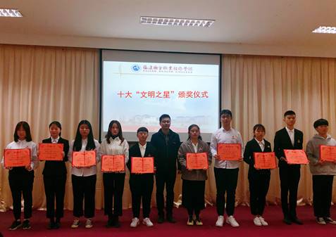 為宣傳學(xué)生先進(jìn)典型,在學(xué)校內(nèi)營造全體同學(xué)見賢思齊,自覺向身邊的榜樣學(xué)習(xí)的氛圍。在2019年繼續(xù)開展學(xué)生日常行為規(guī)范養(yǎng)成教育的基礎(chǔ)上,各系充分發(fā)揮在整個(gè)活動(dòng)中的主體作用,通過學(xué)生、輔導(dǎo)員提名推薦,系部嚴(yán)格審核推薦一批事跡感人的“身邊的榜樣”先進(jìn)典型。學(xué)工處于12月12日組織開展“身邊的榜樣”學(xué)生先進(jìn)典型表彰大會(huì)暨先進(jìn)事跡報(bào)告會(huì),由評(píng)選出的優(yōu)秀學(xué)生代表做個(gè)人先進(jìn)事跡報(bào)告并表彰評(píng)選出的十大“最美心靈生”、十大“最美技能生”十大“最美創(chuàng)業(yè)生”十大“文明之星”進(jìn)行頒獎(jiǎng)。學(xué)工處宋維副處長、林燕副處長以及學(xué)工處人員、全校在校班級(jí)班長、受表彰學(xué)生參加。
