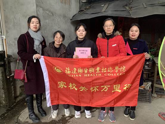 春節(jié)將至,年味漸濃。2020年1月17日,受陳貞健副校長的委托,學(xué)工處林燕副處長一行3人看望慰問了建檔立卡家庭貧困生19護(hù)理306班鄭林艷同學(xué),為鄭林艷同學(xué)及家人送上新春祝福和誠摯問候。