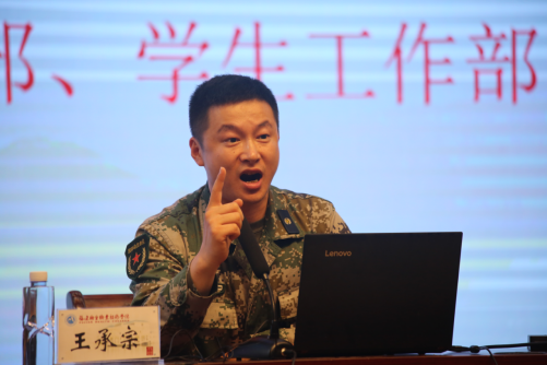 閩侯縣人民武裝部政工科科長王承宗現(xiàn)場高唱《好男兒就是要當兵》,引發(fā)全場同學的鼓掌呼應,王承宗科長還分享本人從2009年大學畢業(yè)至今當兵的體會,以自身的經(jīng)歷告訴同學們大學生征兵的政策一年比一年好。