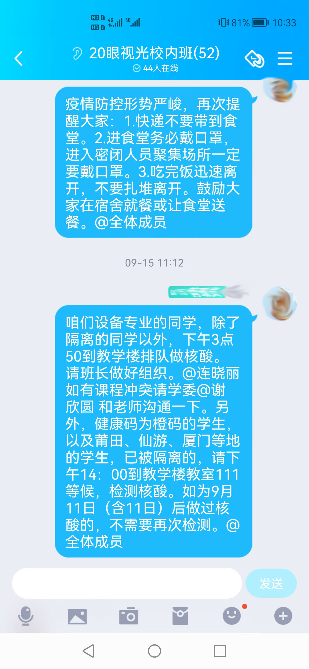疫情就是命令,防控就是責(zé)任。9月10日傍晚,莆田仙游檢出陽(yáng)性病例,而第二天,就是學(xué)校迎新報(bào)到的關(guān)鍵階段,新生人流量大、行程覆蓋面廣,疫情輸入風(fēng)險(xiǎn)高。嚴(yán)峻的疫情防控是對(duì)校園疫情管理的一場(chǎng)實(shí)戰(zhàn)大考——在這個(gè)戰(zhàn)場(chǎng)和考場(chǎng)上,有那么一個(gè)團(tuán)隊(duì),主動(dòng)作為、勇于擔(dān)當(dāng),把做好疫情防控作為當(dāng)前最重要的政治任務(wù),夜以繼日地投身于疫情防控工作中,他們,就是同學(xué)們最熟悉的輔導(dǎo)員。
