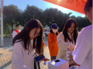 工作人員引導(dǎo)同學(xué)們參加此次捐贈(zèng)物資、填寫問(wèn)卷,以及集贊兌品,并向同學(xué)們普及資助政策。